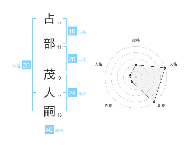 占部 茂人嗣さんの地格は24画の5点!