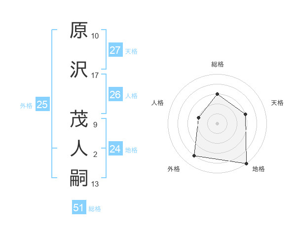 原沢 茂人嗣さんを姓名の画数から五運を鑑定