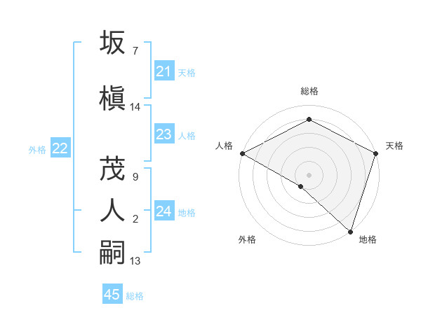 坂槇 茂人嗣さんを姓名の画数から五運を鑑定