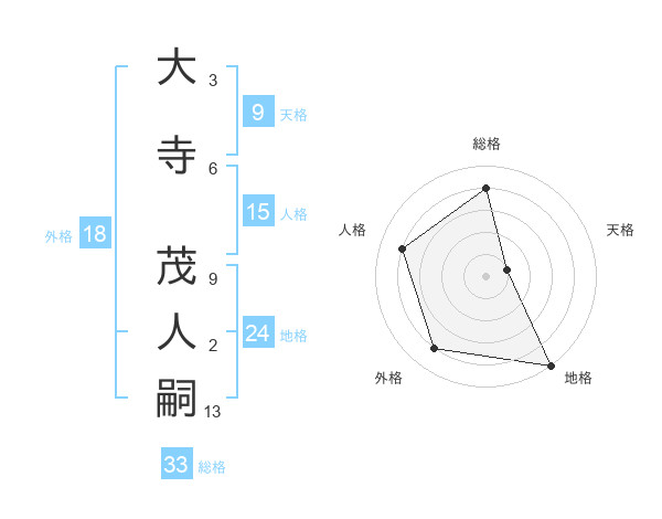 大寺 茂人嗣さんの総格は33画の4点!