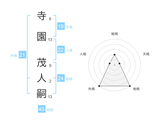 寺園 茂人嗣さんの総格は43画の2点!