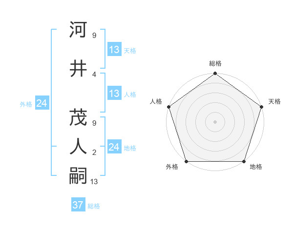 河井 茂人嗣さんを姓名の画数から五運を鑑定