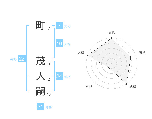 町 茂人嗣さんの総格は31画の5点!