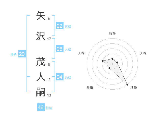 矢沢 茂人嗣さんの天格は22画の1点!