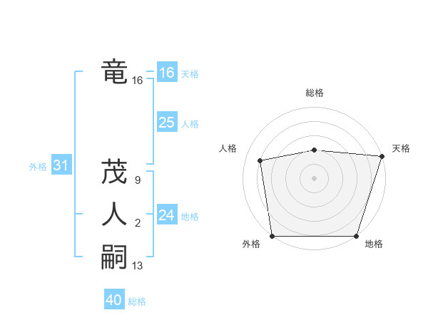竜 茂人嗣さんの天格は16画の5点!