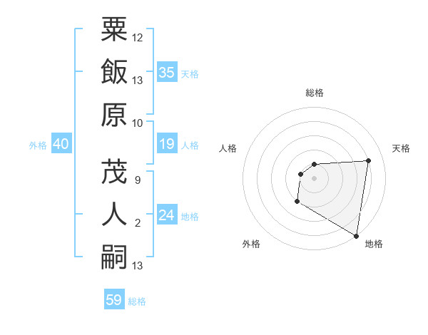 粟飯原 茂人嗣さんの天格は35画の4点!