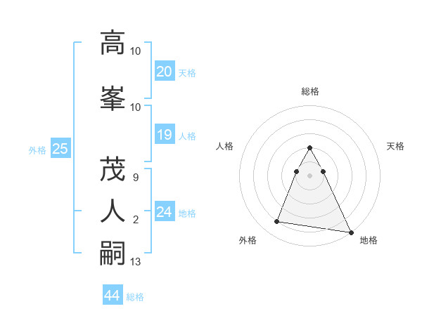 高峯 茂人嗣さんの総格は44画の2点!
