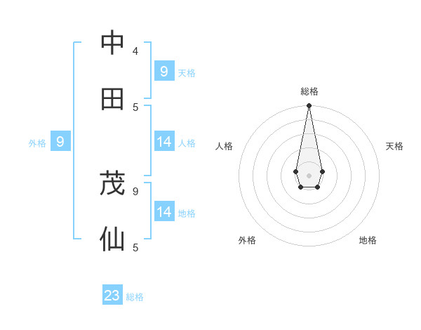 中田 茂仙さんを姓名の画数から五運を鑑定