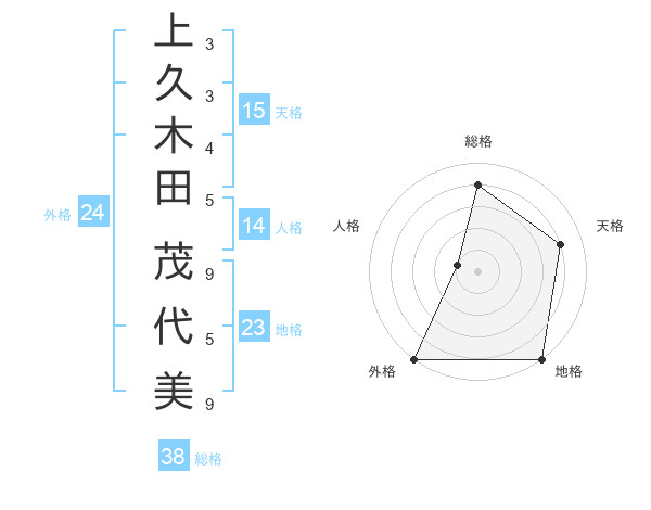 上久木田 茂代美さんの総格は38画の4点!