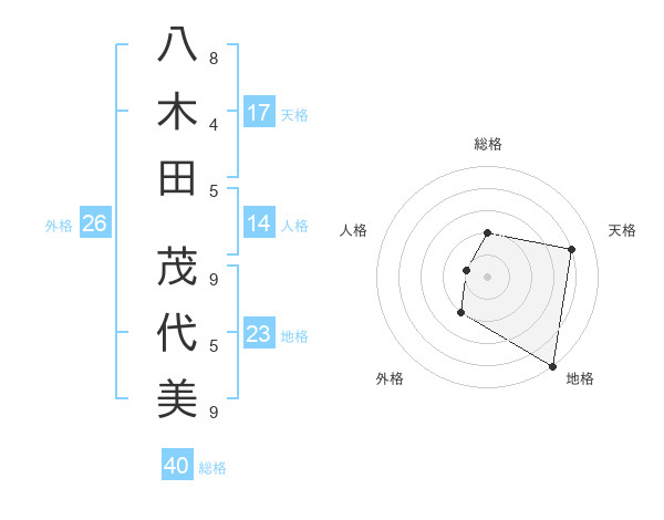 八木田 茂代美さんの天格は17画の4点!