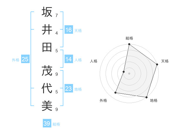 坂井田 茂代美さんを姓名の画数から五運を鑑定