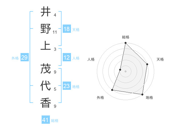 井野上 茂代香さんを姓名の画数から五運を鑑定