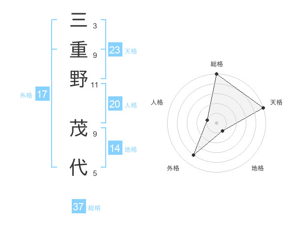 三重野 茂代さんの総格は37画の5点!