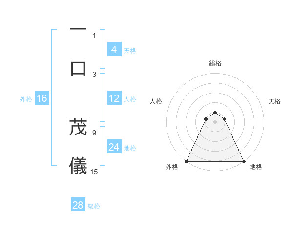 一口 茂儀さんの総格は28画の1点!