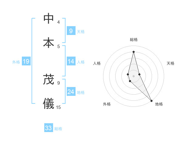 中本 茂儀さんを姓名の画数から五運を鑑定