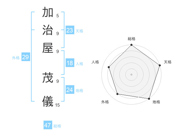 加治屋 茂儀さんを姓名の画数から五運を鑑定