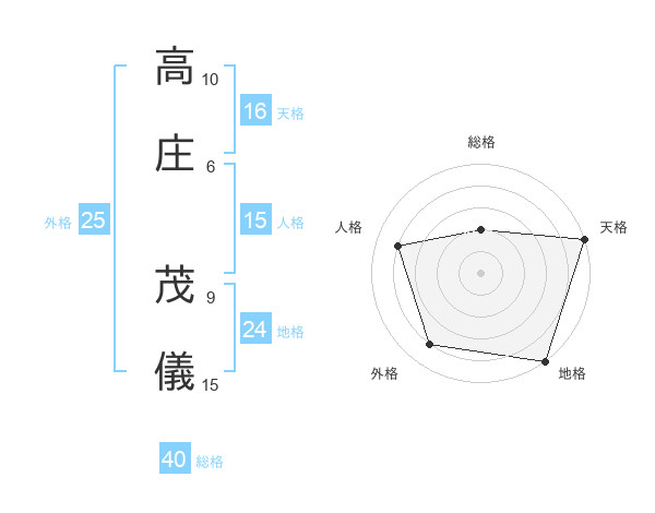 高庄 茂儀さんを姓名の画数から五運を鑑定