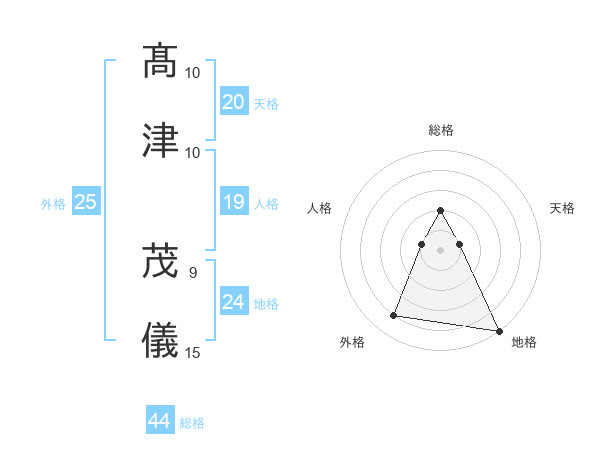 髙津 茂儀さんを姓名の画数から五運を鑑定