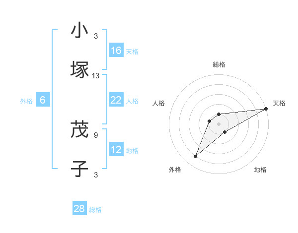 小塚 茂子さんの総格は28画の1点!