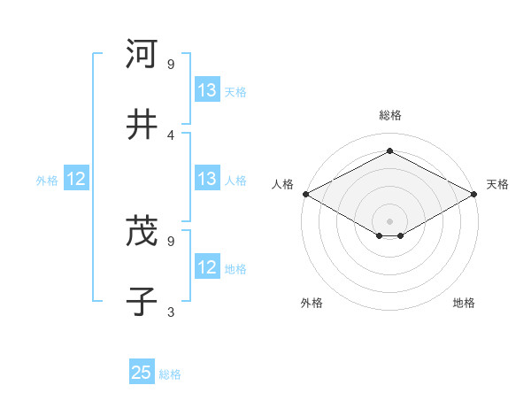 河井 茂子さんの天格は13画の5点!