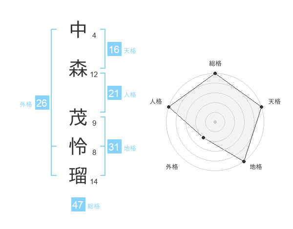 中森 茂怜瑠さんの人格は21画の5点!