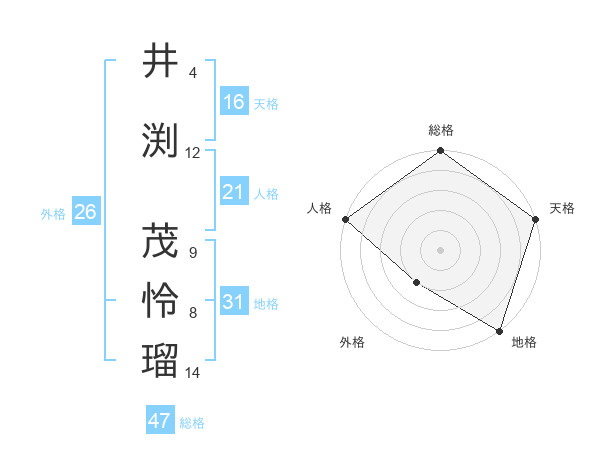 井渕 茂怜瑠さんの総格は47画の5点!