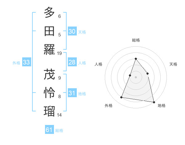 多田羅 茂怜瑠さんの総格は61画の3点