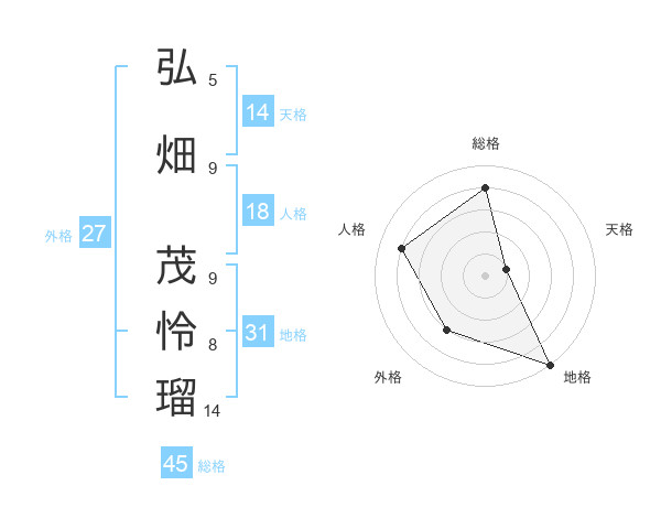 弘畑 茂怜瑠さんの総格は45画の4点!