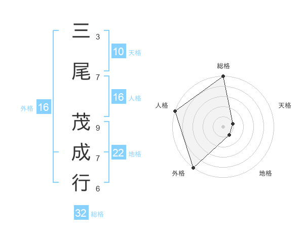 三尾 茂成行さんを姓名の画数から五運を鑑定