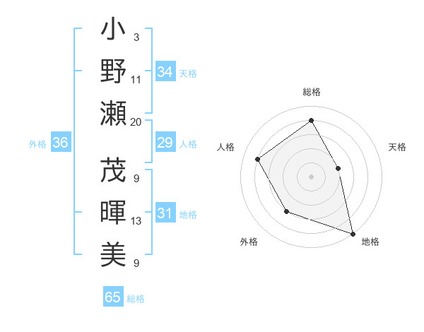 小野瀬 茂暉美さんを姓名の画数から五運を鑑定
