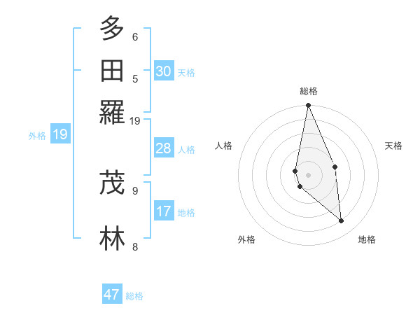 多田羅 茂林さんの総格は47画の5点!