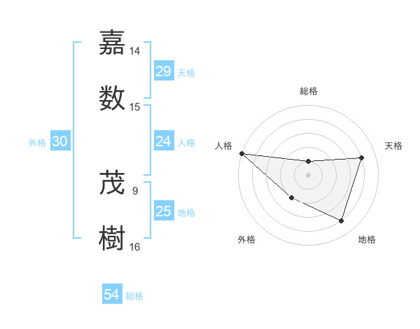 嘉数 茂樹さんを姓名の画数から五運を鑑定