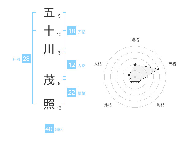五十川 茂照さんを姓名の画数から五運を鑑定