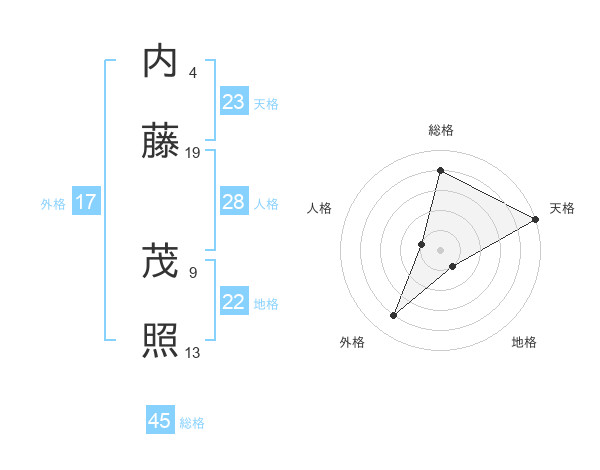 内藤 茂照さんを姓名の画数から五運を鑑定