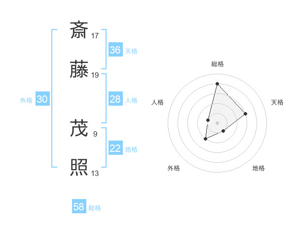 斎藤 茂照さんを姓名の画数から五運を鑑定