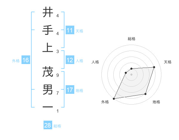 井手上 茂男一さんの総格は28画の1点!