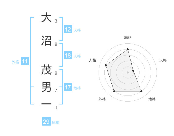 大沼 茂男一さんを姓名の画数から五運を鑑定