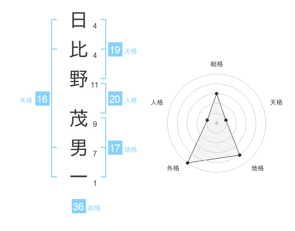 日比野 茂男一さんを姓名の画数から五運を鑑定
