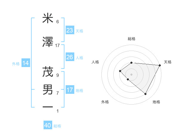 米澤 茂男一さんの天格は23画の5点!