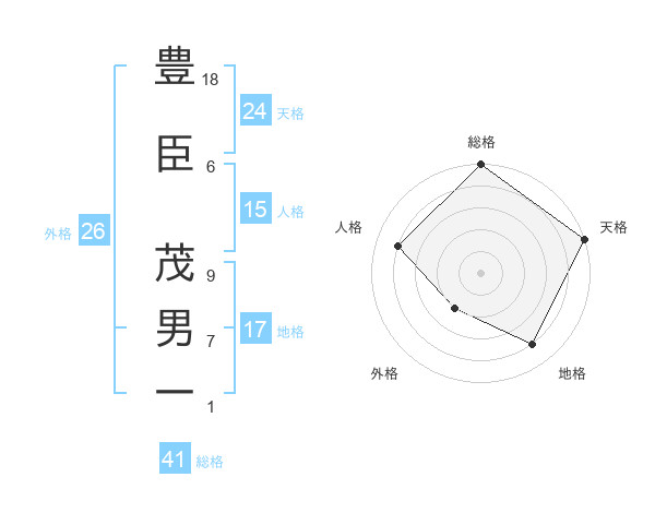 豊臣 茂男一さんを姓名の画数から五運を鑑定