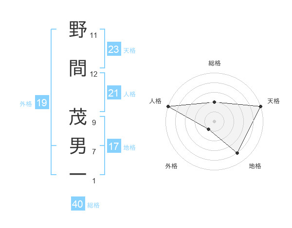 野間 茂男一さんの人格は21画の5点!