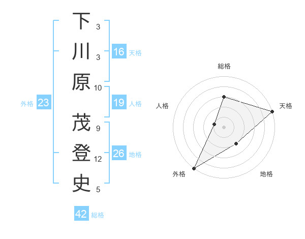 下川原 茂登史さんを姓名の画数から五運を鑑定