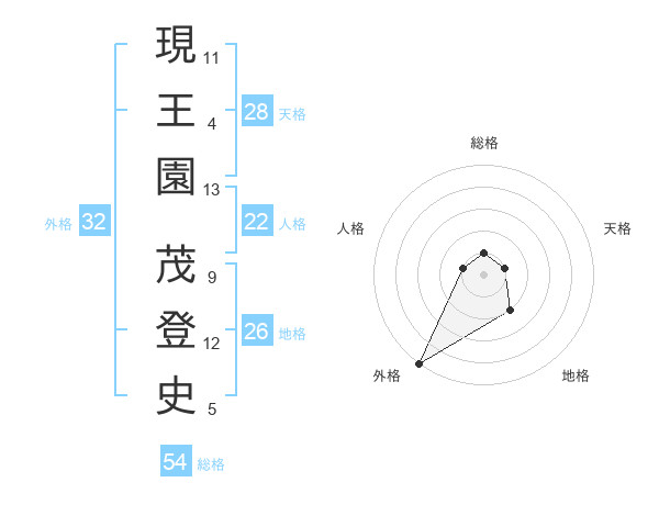 現王園 茂登史さんを姓名の画数から五運を鑑定