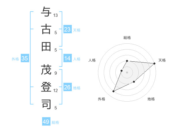 与古田 茂登司さんを姓名の画数から五運を鑑定