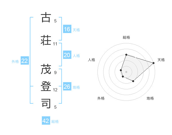 古荘 茂登司さんの総格は42画の3点!