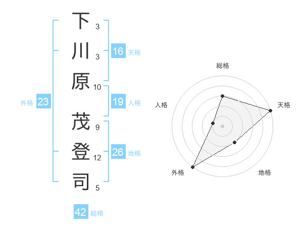 下川原 茂登司さんの総格は42画の3点!