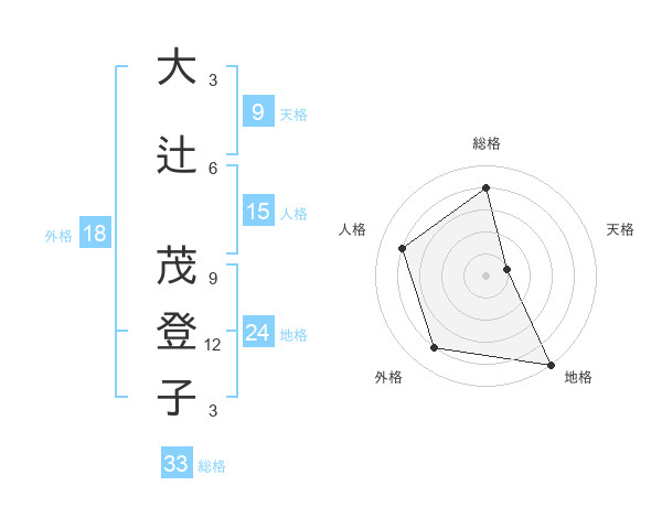 大辻 茂登子さんの総格は33画の4点!