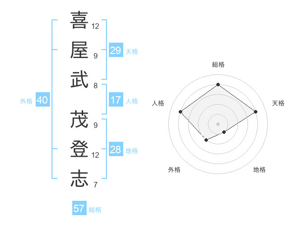 喜屋武 茂登志さんを姓名の画数から五運を鑑定