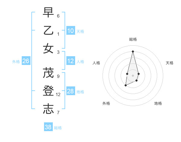 早乙女 茂登志さんを姓名の画数から五運を鑑定