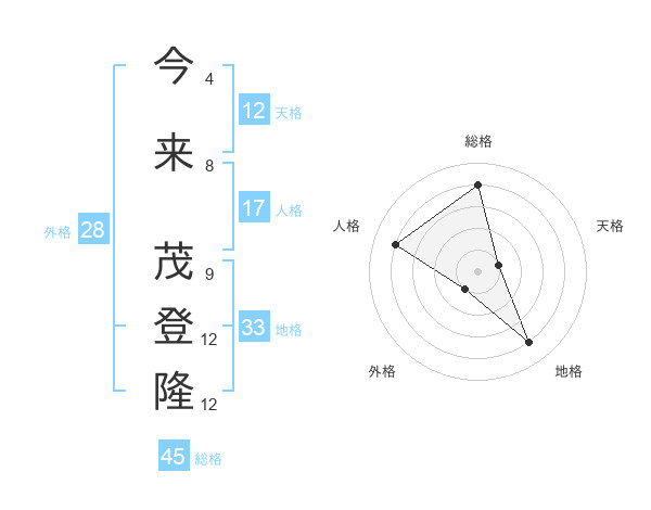 今来 茂登隆さんを姓名の画数から五運を鑑定